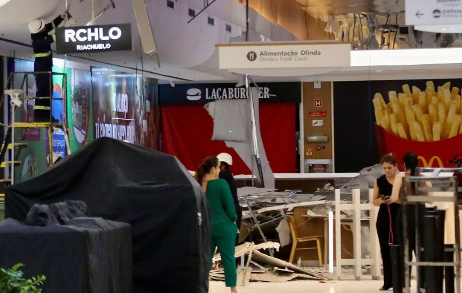 Um segmento do teto da Praça de Alimentação do Shopping Tacaruna, na cidade de Olinda, desabou por volta das 20h30 da última terça-feira (09), atingindo uma mesa onde uma família estava sentada, conforme relatos de testemunhas.
